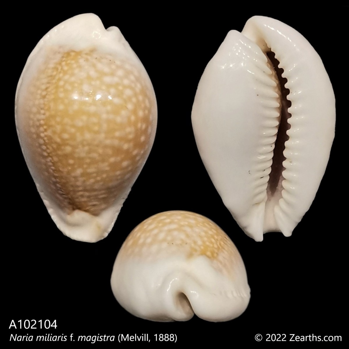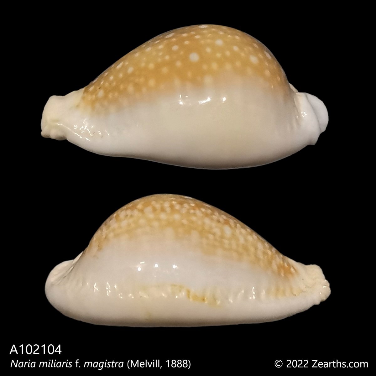 Naria miliaris, common name the “millet cowry” or the “inocellate cowry” or the “military cowry”, is a species of sea snail, a marine gastropod mollusk in the family Cypraeidae, the cowries.