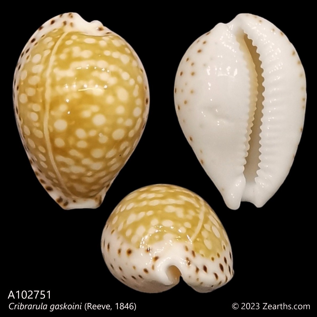Cribrarula gaskoini, common name the “Gaskoin’s Cowry”, is a species of sea snail, a cowry, a marine gastropod mollusk in the family Cypraeidae, the cowries.