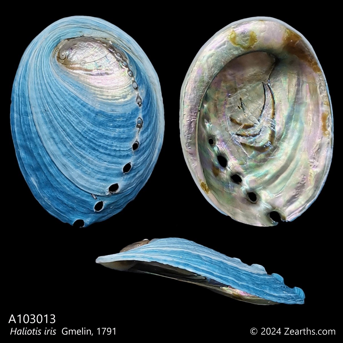 Haliotis iris, common name the “paua”, “blackfoot paua” or “rainbow abalone”, is a species of sea snail, a marine gastropod mollusk in the family Haliotidae, the abalones. This marine species is endemic to New Zealand.