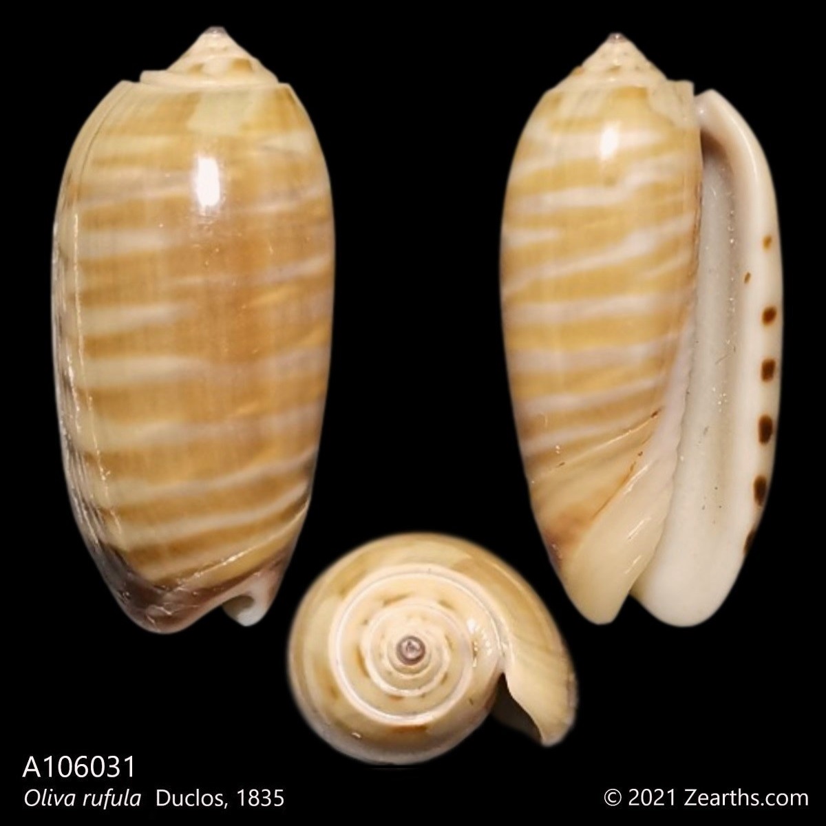Oliva rufula, common name the “Rufula/Reddish/Chevron Olive”, is a species of sea snail, a marine gastropod mollusk in the family Olividae, the olives.
