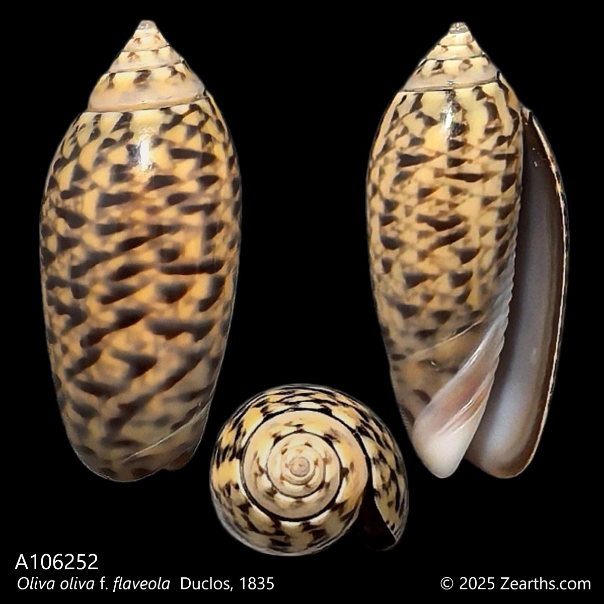 Oliva oliva, common name the “pearl olive” or “common olive”, is a species of sea snail, a marine gastropod mollusk in the family Olividae, the olives.
