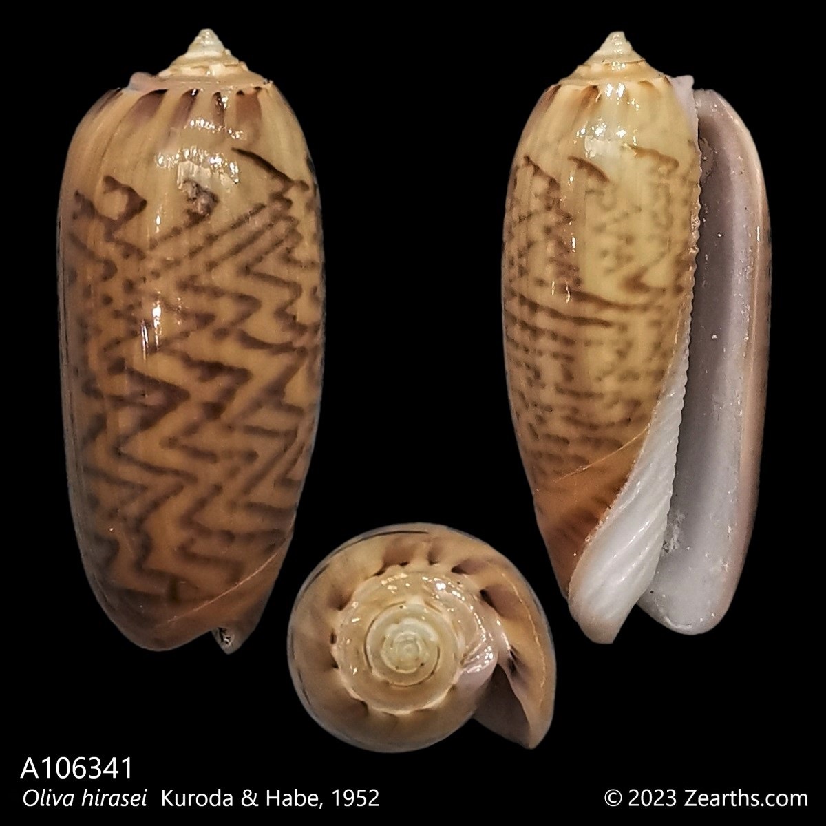 [A106341] Oliva hirasei Kuroda & Habe, 1952