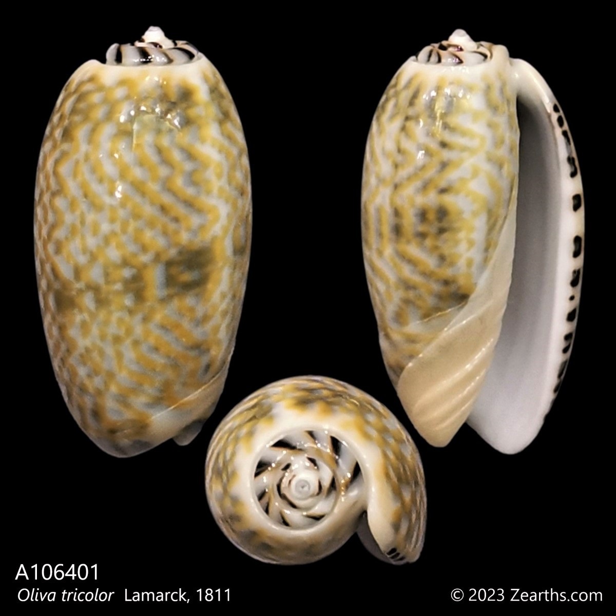 Oliva tricolor, common name the “tricolor olive”, is a species of sea snail, a marine gastropod mollusk in the family Olividae, the olives.