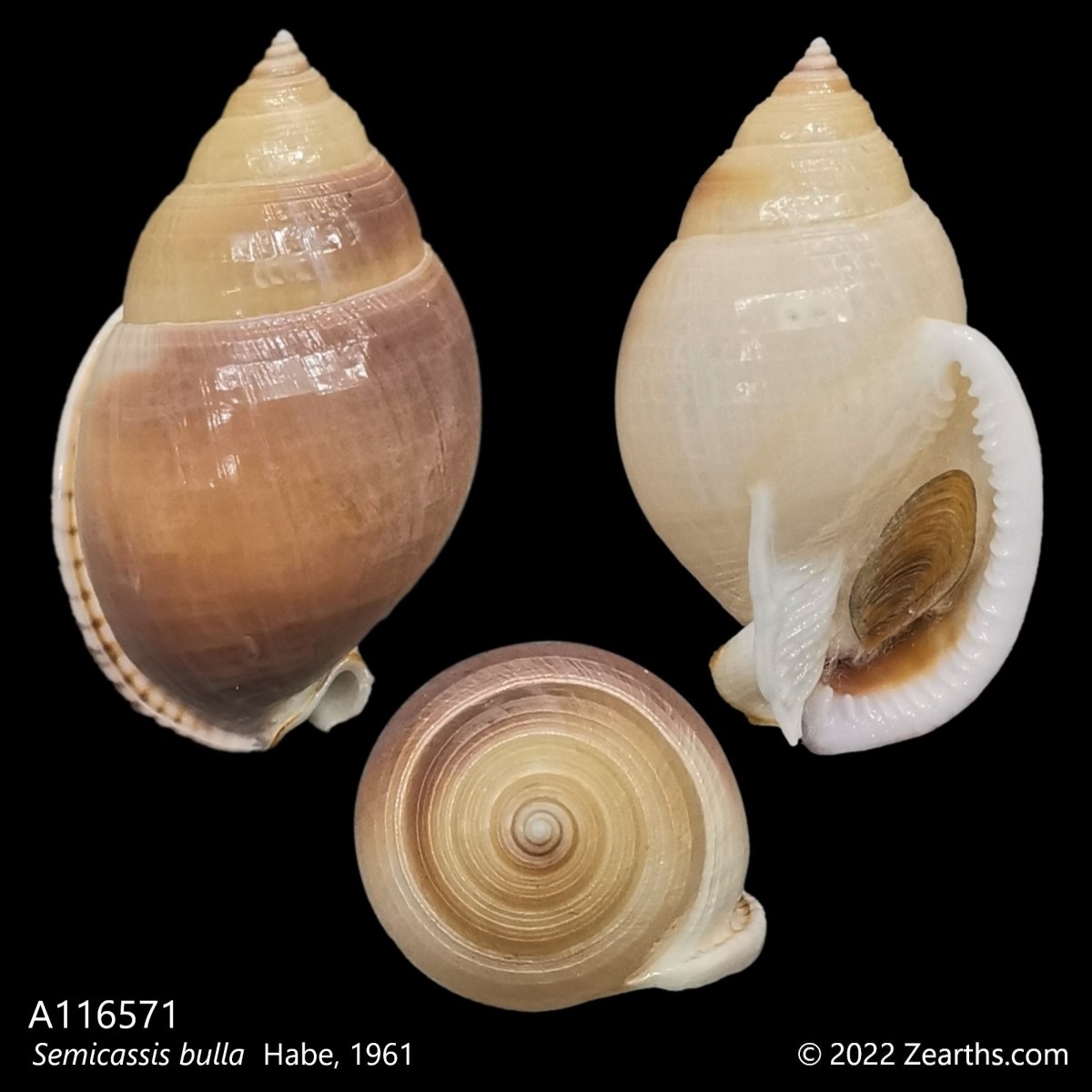 Semicassis bulla, common name the “bubble bonnet”, is a species of sea snail, a marine gastropod mollusk in the family Cassidae, the helmet snails and bonnet snails.