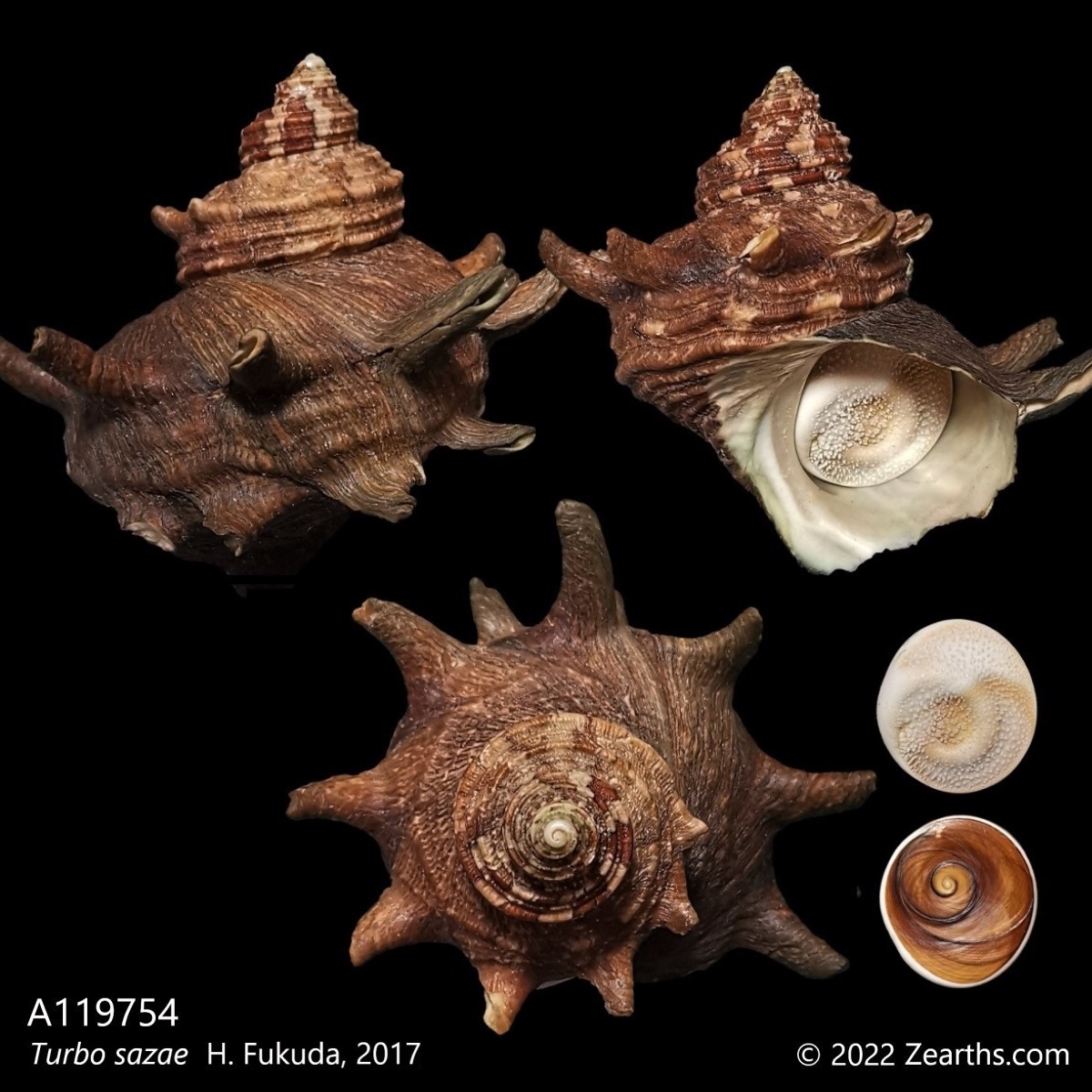 Turbo sazae is a species of sea snail, a marine gastropod mollusk, in the family Turbinidae, the turban snails. This species has previously been misidentified as Turbo coronatus, which mainly occurs in China.