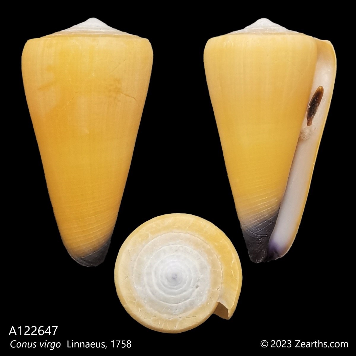 Conus virgo, common name the “virgin cone”, is a species of sea snail, a marine gastropod mollusk in the family Conidae, the cone snails and their allies.