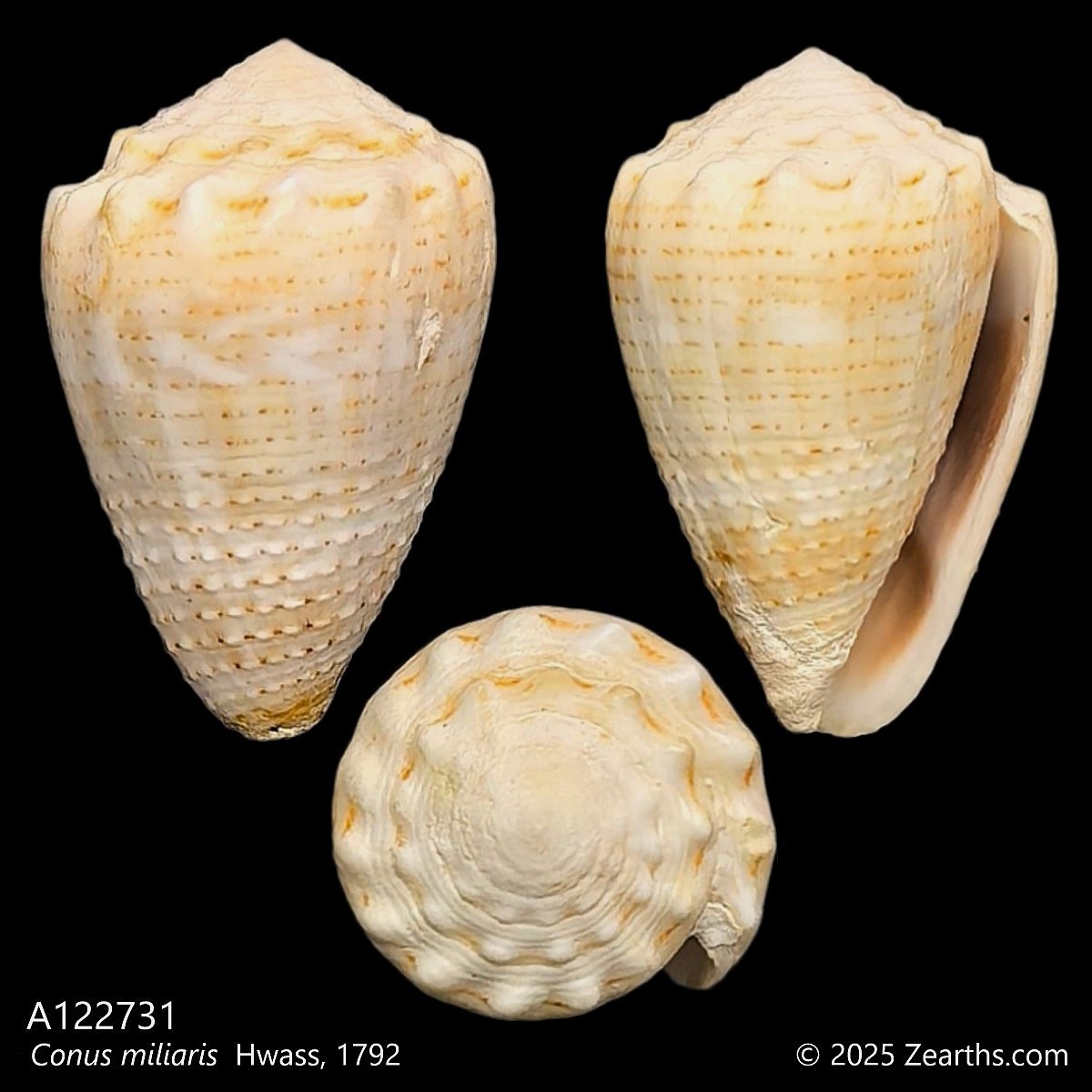 Conus miliaris, common name the “thousand-spot cone”, is a species of sea snail, a marine gastropod mollusk in the family Conidae, the cone snails and their allies