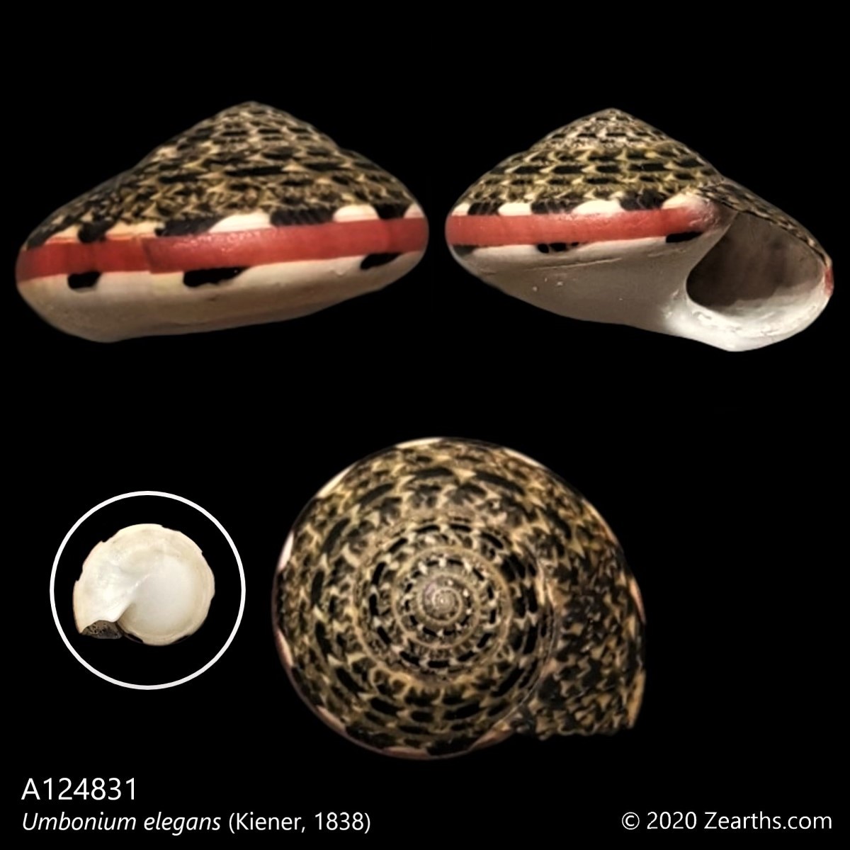Umbonium elegans (Kiener, 1838) is a species of sea snail known as the “top shells”, a marine gastropod mollusk in the family Trochidae.