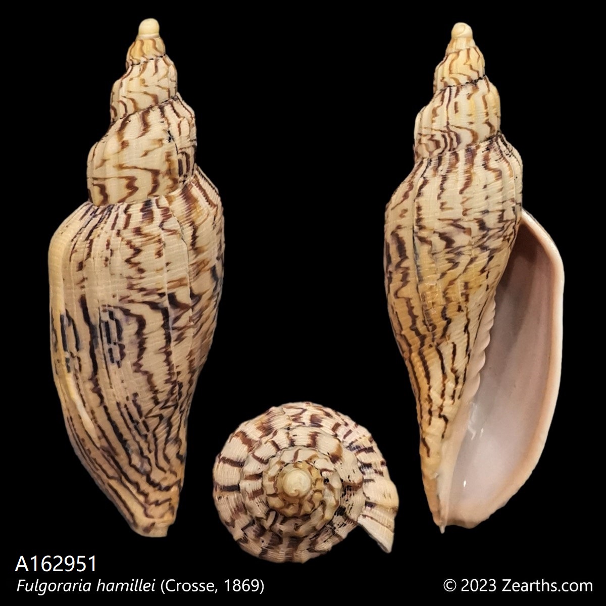 Fulgoraria hamillei, common name the “Hamille’s Volute”, is a species of sea snail, a marine gastropod mollusk in the family Volutidae, the volutes.