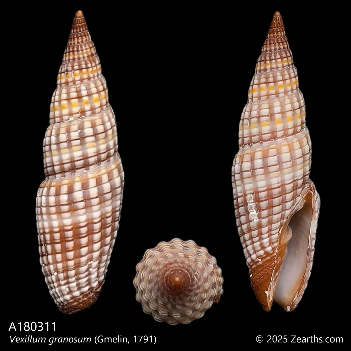 Vexillum granosum, common name the “granular miter”, is a species of small sea snail, marine gastropod mollusk in the family Costellariidae, the ribbed miters.