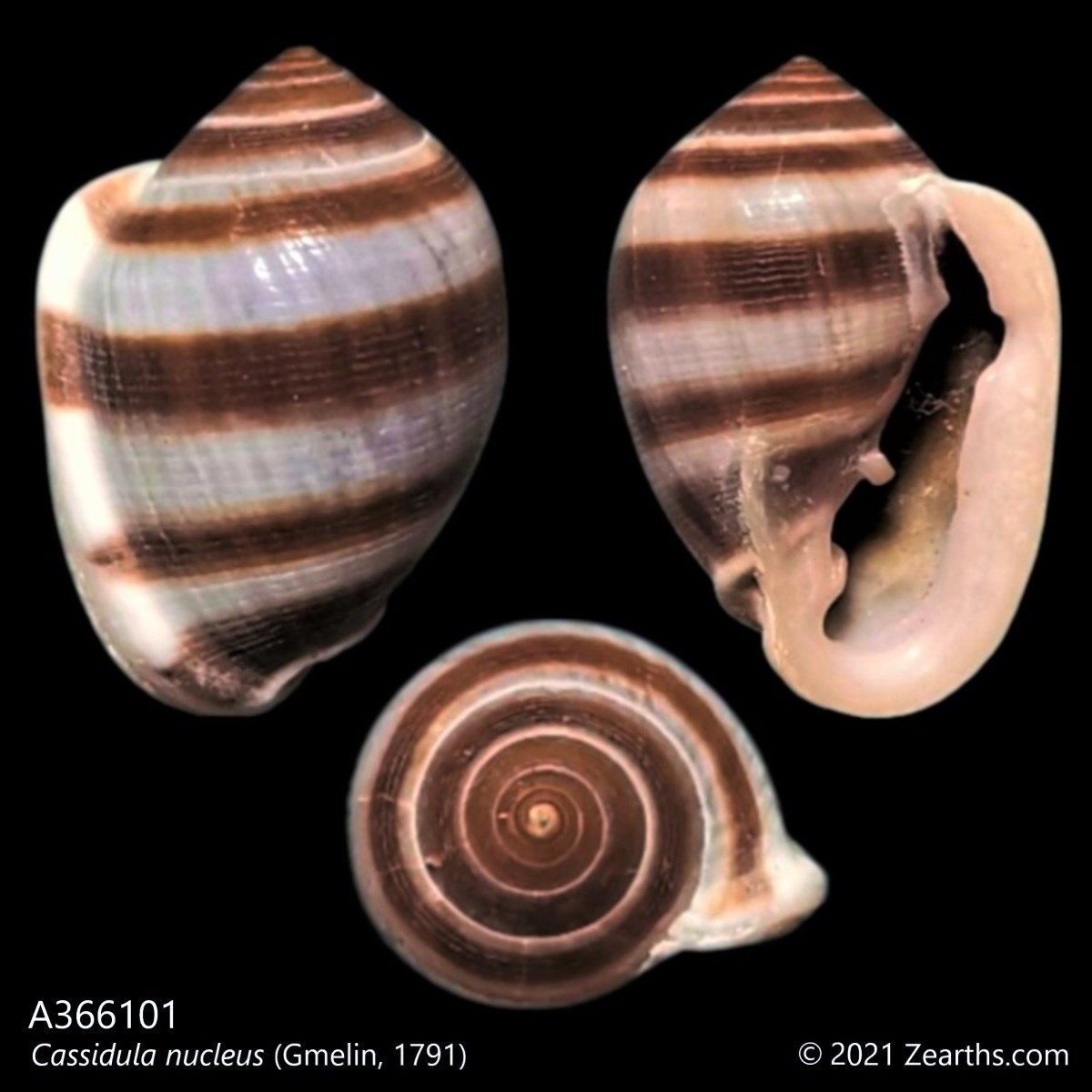 Cassidula nucleus, common name the “Weasel Ear Snail”, is a species of air-breathing marine snail, a pulmonate gastropod mollusk in the family Ellobiidae, the ear snails.